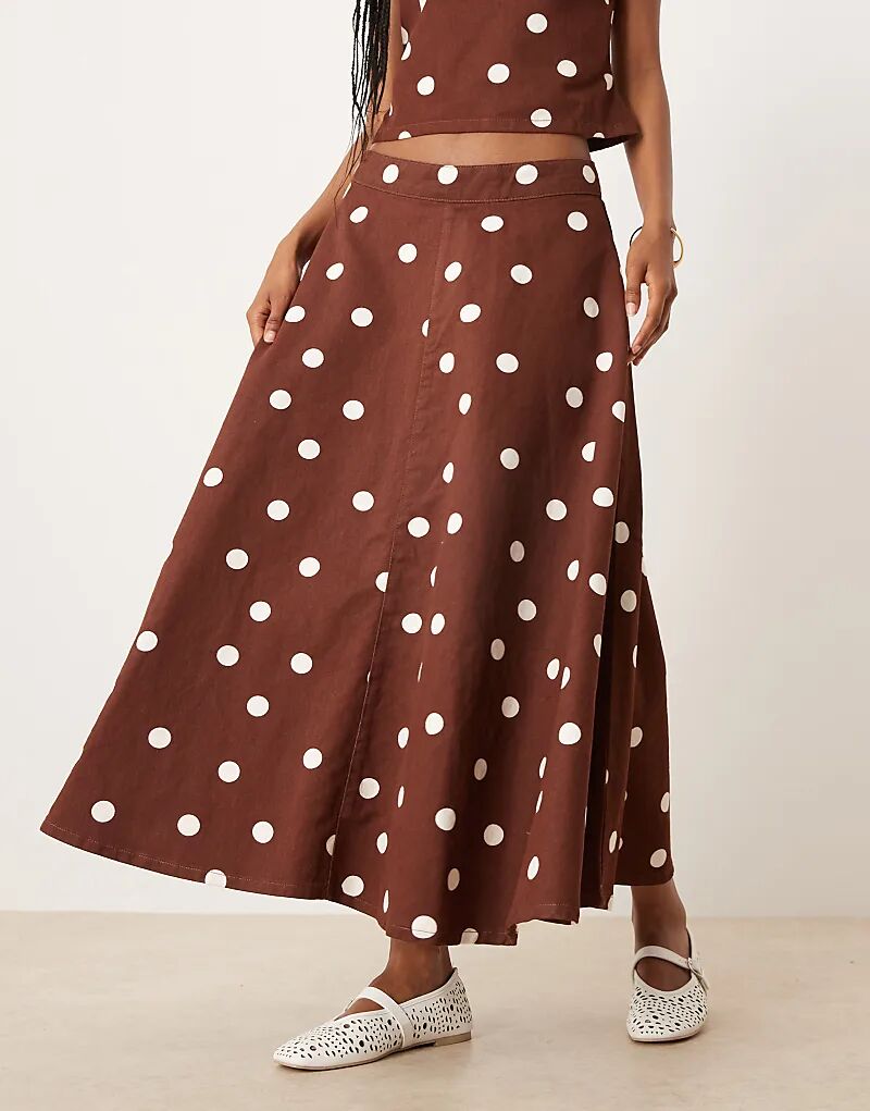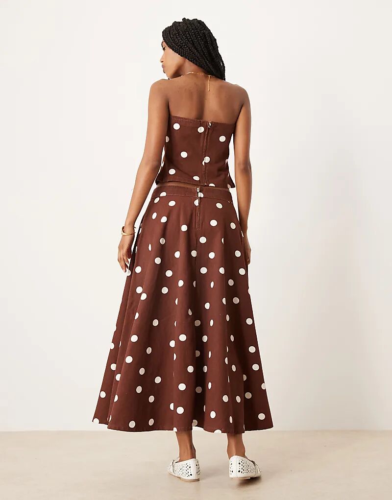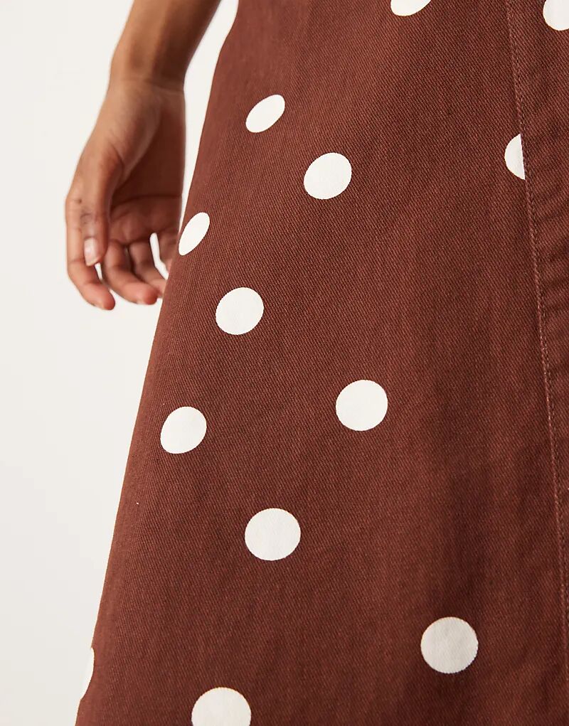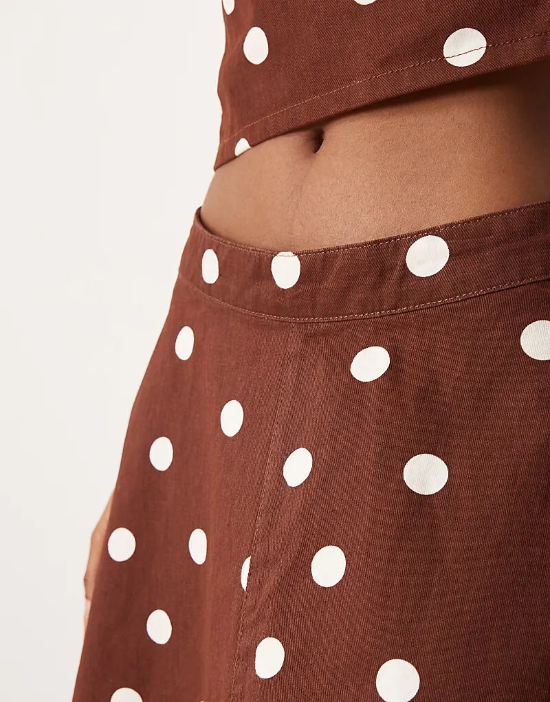 Джинсовая юбка-солнце ASOS DESIGN в коричневый горошек