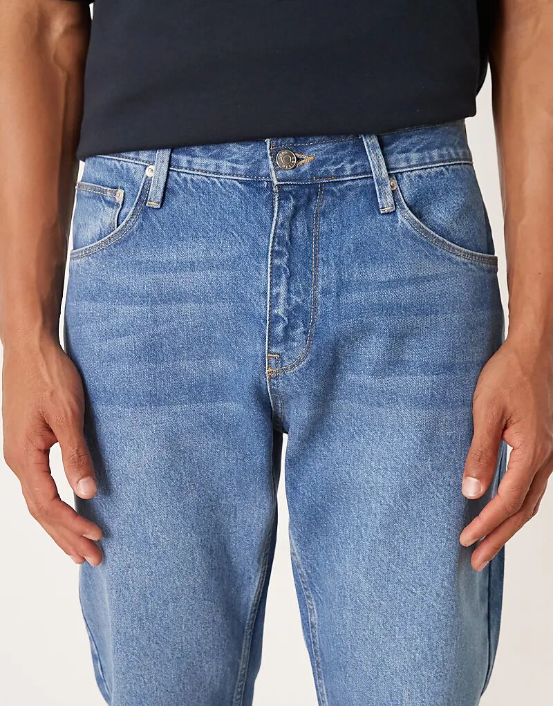Джинсовая ткань средней плотности, неэластичная: средне-синяя стирка