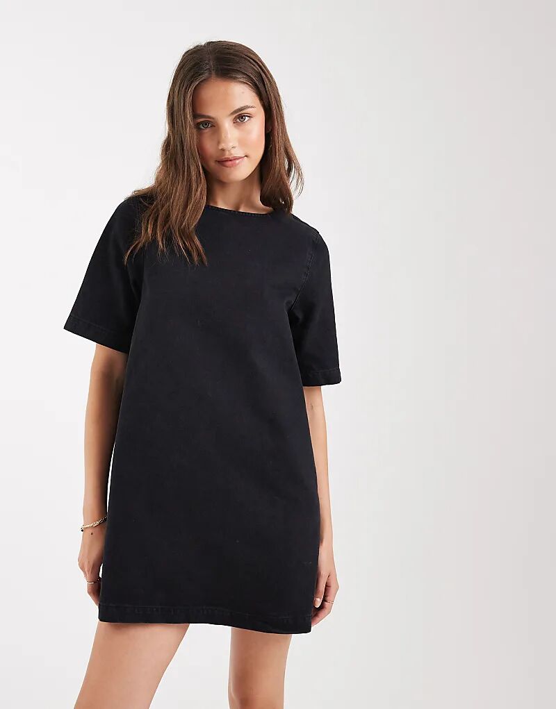 Джинсовое мини-платье-футболка ASOS DESIGN черного цвета