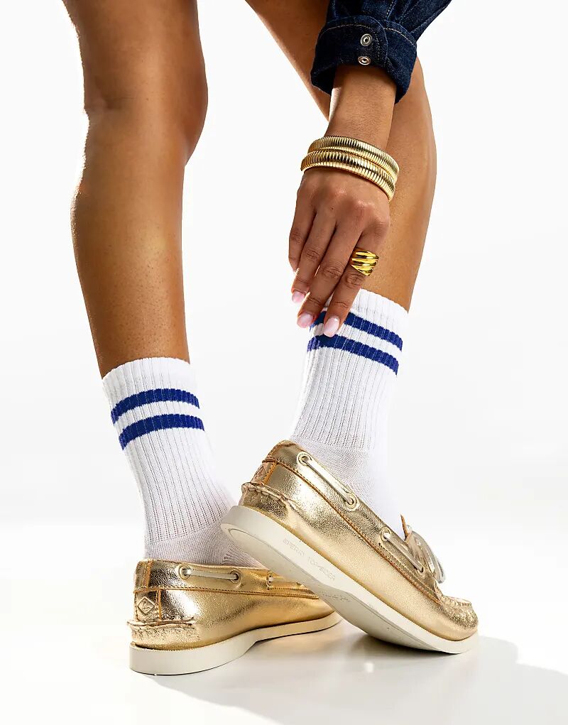 Туфли-лодочки Sperry Authentic с двумя парами люверсов в золотом цвете