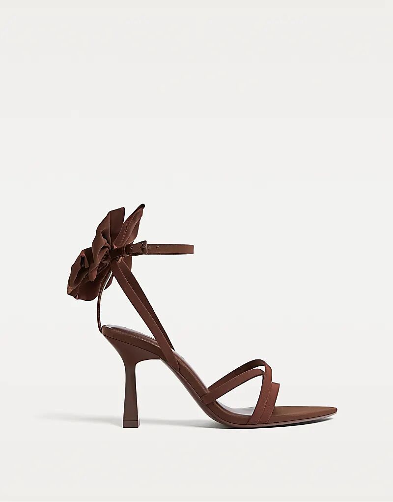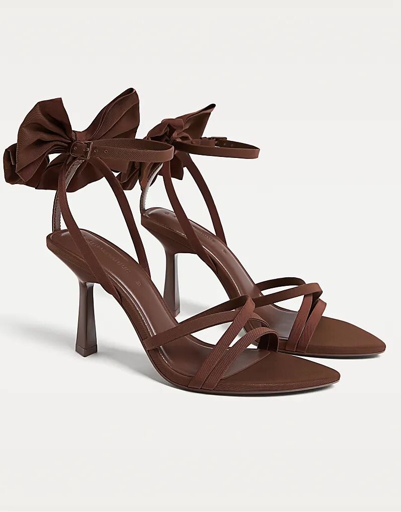 Босоножки Stradivarius на каблуке с бантом коричневого цвета