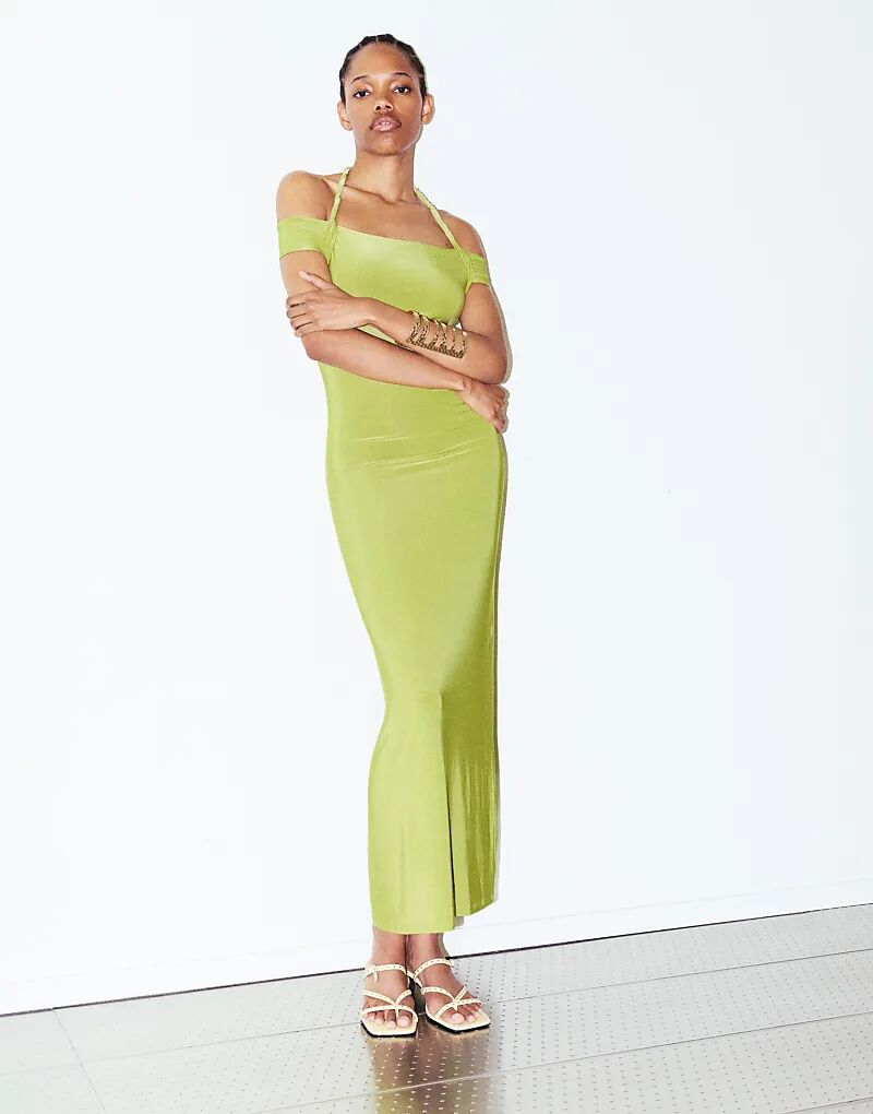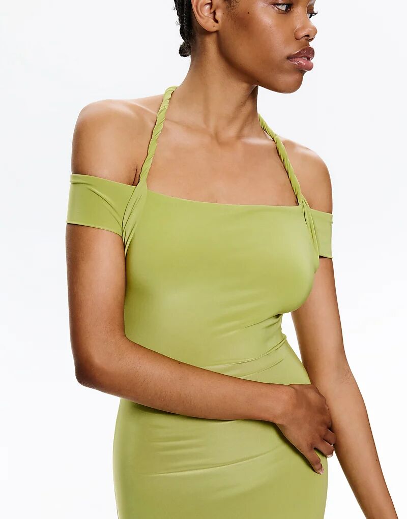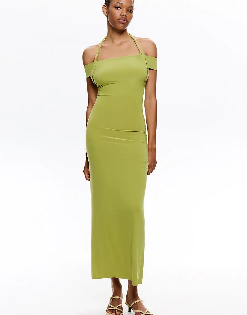 Платье Pull&Bear с халтернеем и узлом фисташкового цвета