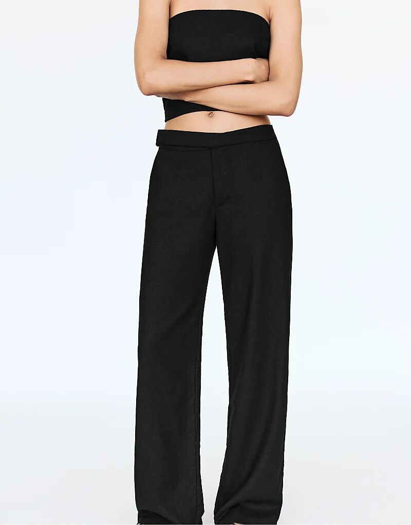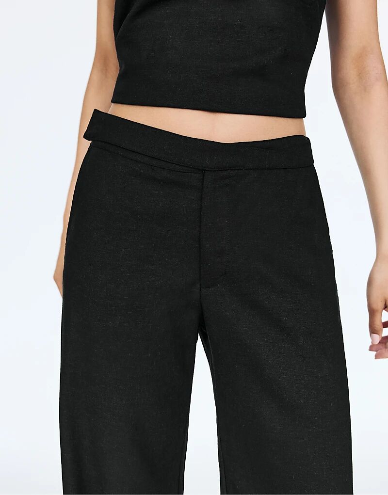 Брюки Pull&Bear с перекрещивающейся талией черного цвета