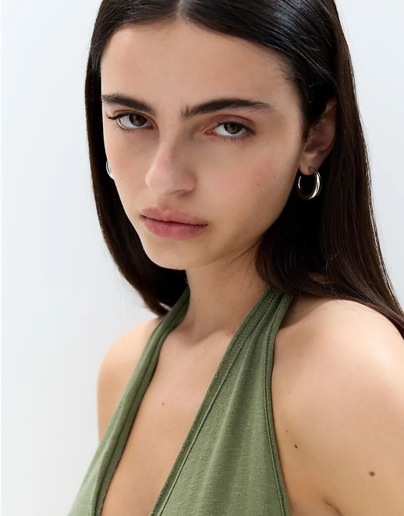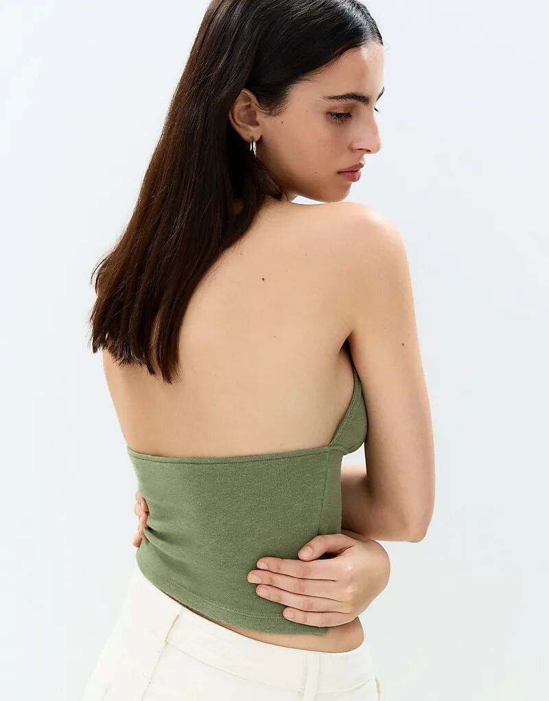 Топ-халтер Pull&Bear средне-зеленого цвета
