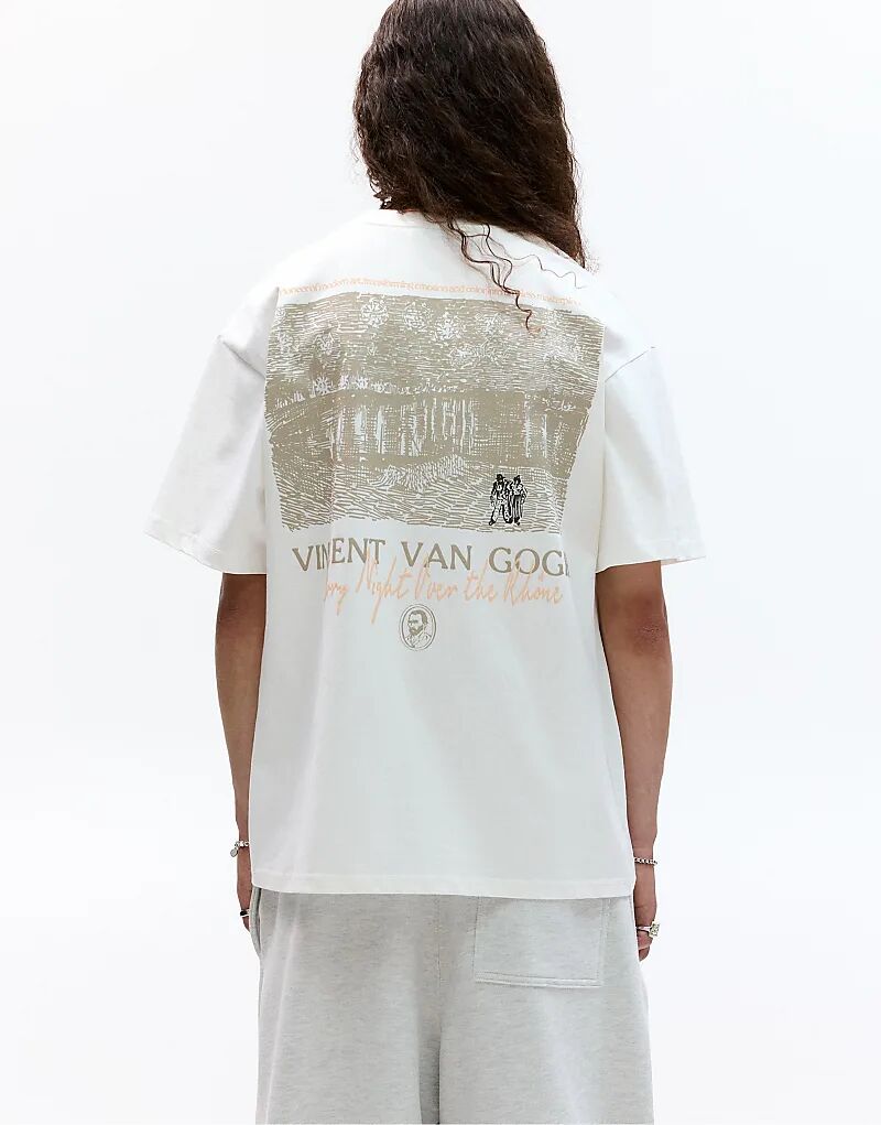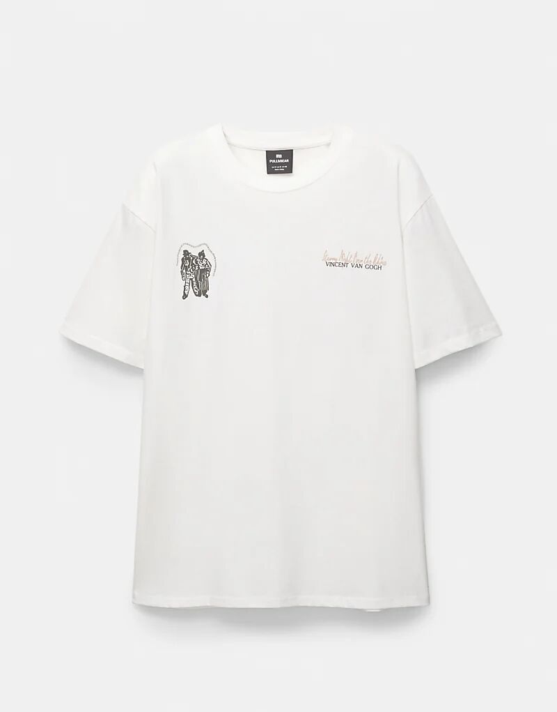 Футболка Pull&Bear с принтом Ван Гога в кремово-белом цвете
