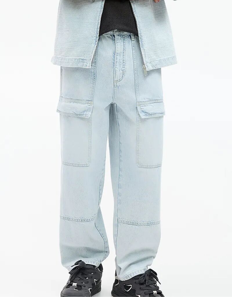 Джинсы-карго Pull&Bear мешковатого кроя бледно-голубого цвета