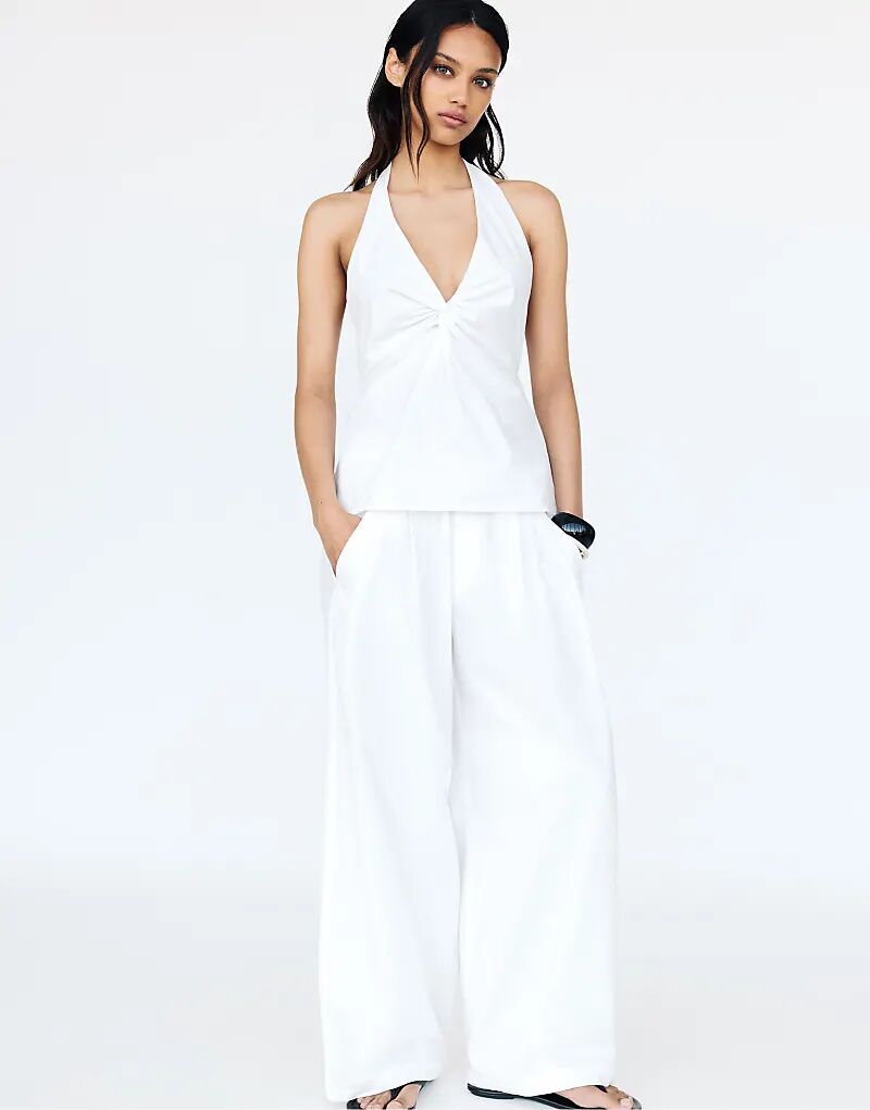 Белый топ-халтер Pull&Bear с V-образным вырезом