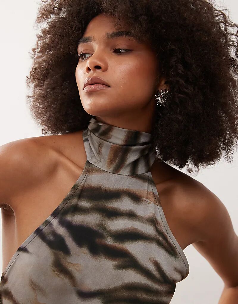Платье COLLUSION с вырезом халтер и мини-юбкой с тигровым принтом