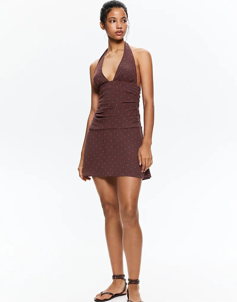 Мини-платье в горошек Pull&Bear шоколадного цвета