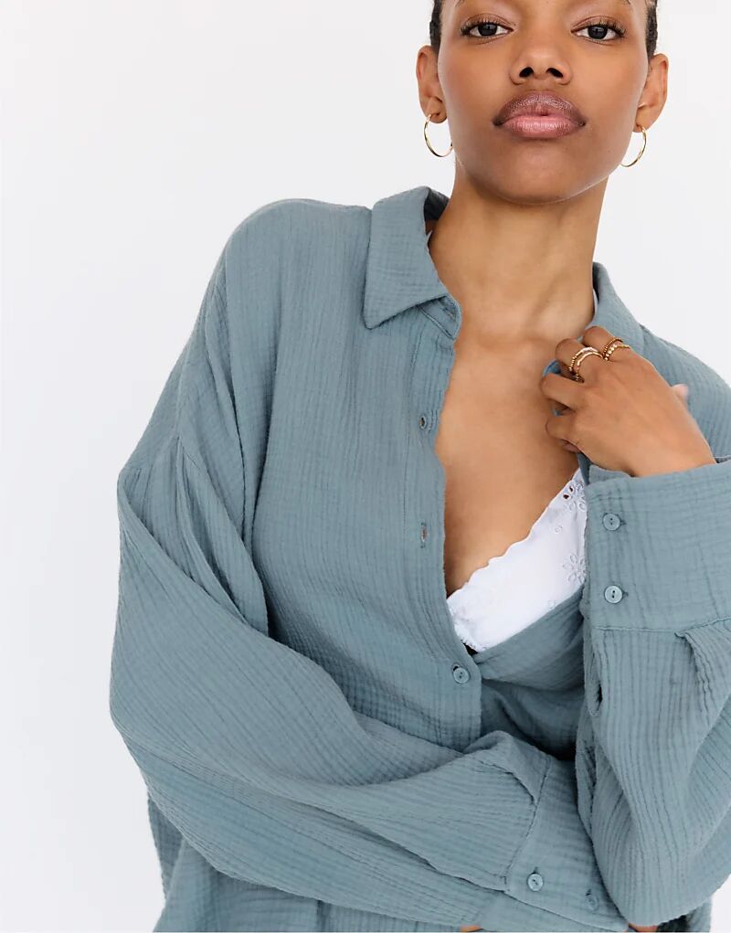 Рубашка Pull&Bear с длинными рукавами синего цвета