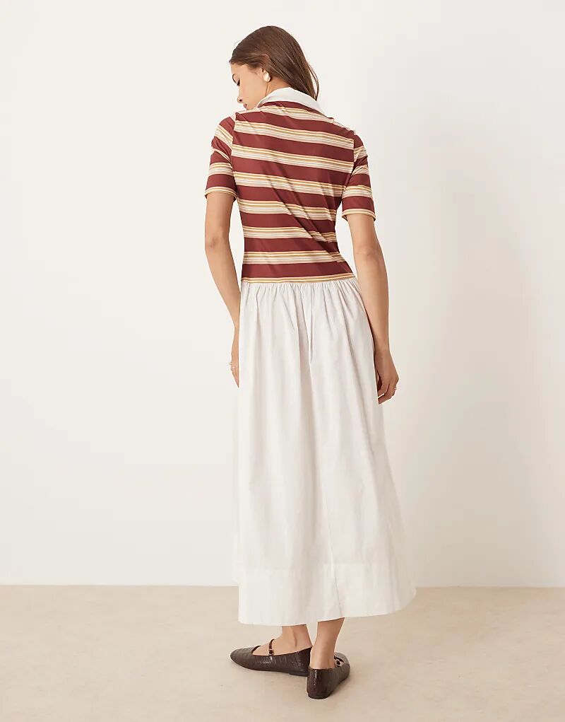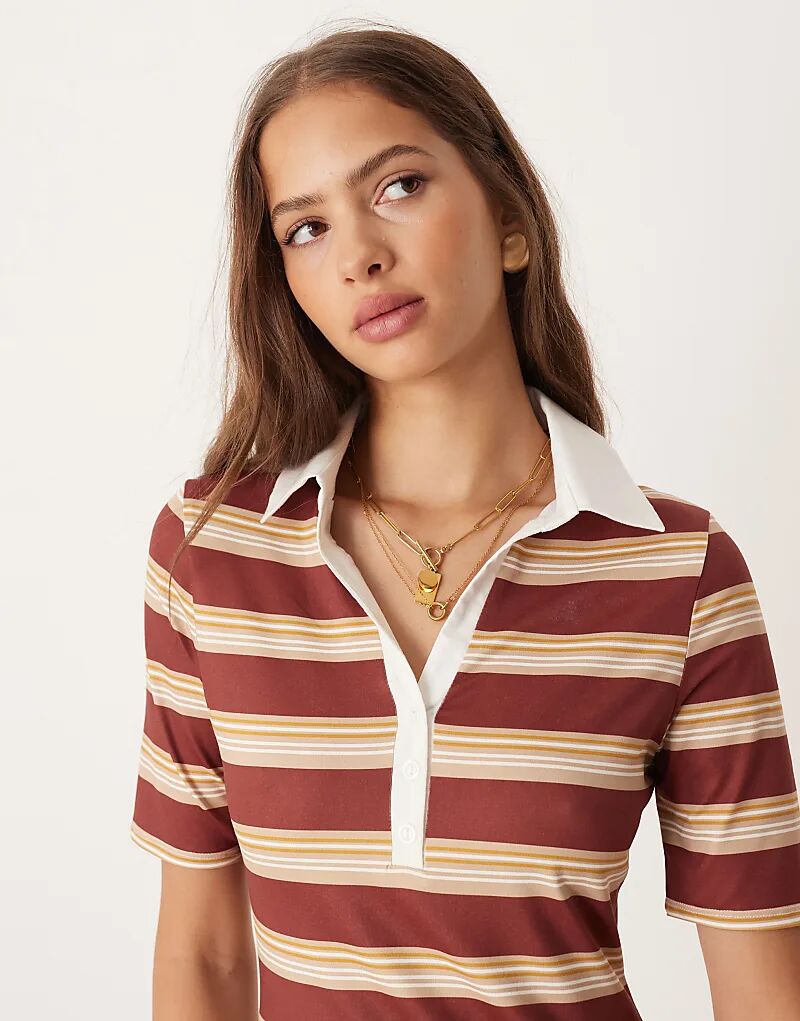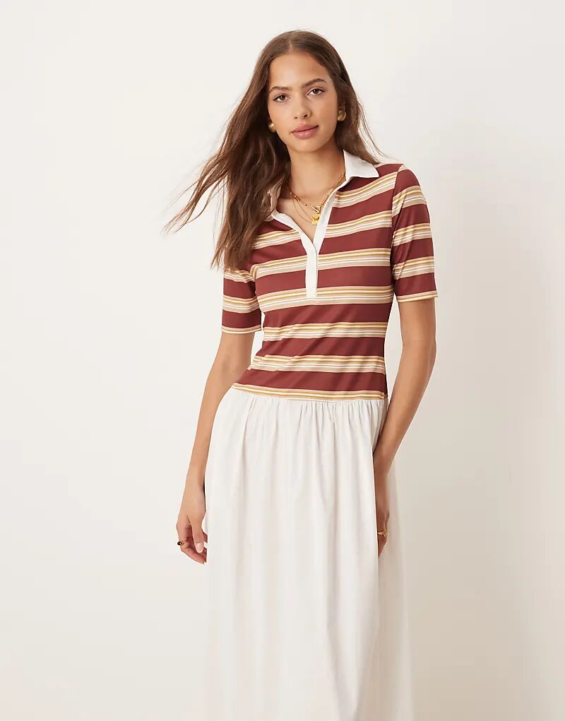 Платье-поло миди ASOS DESIGN в коричневую полоску