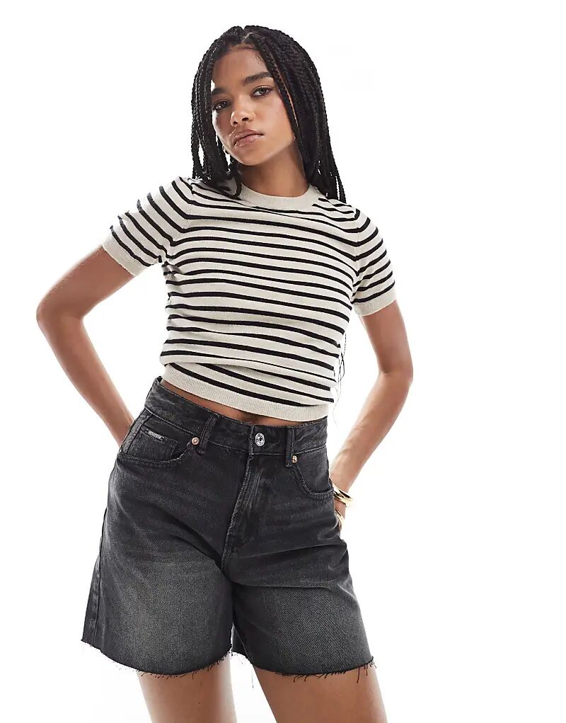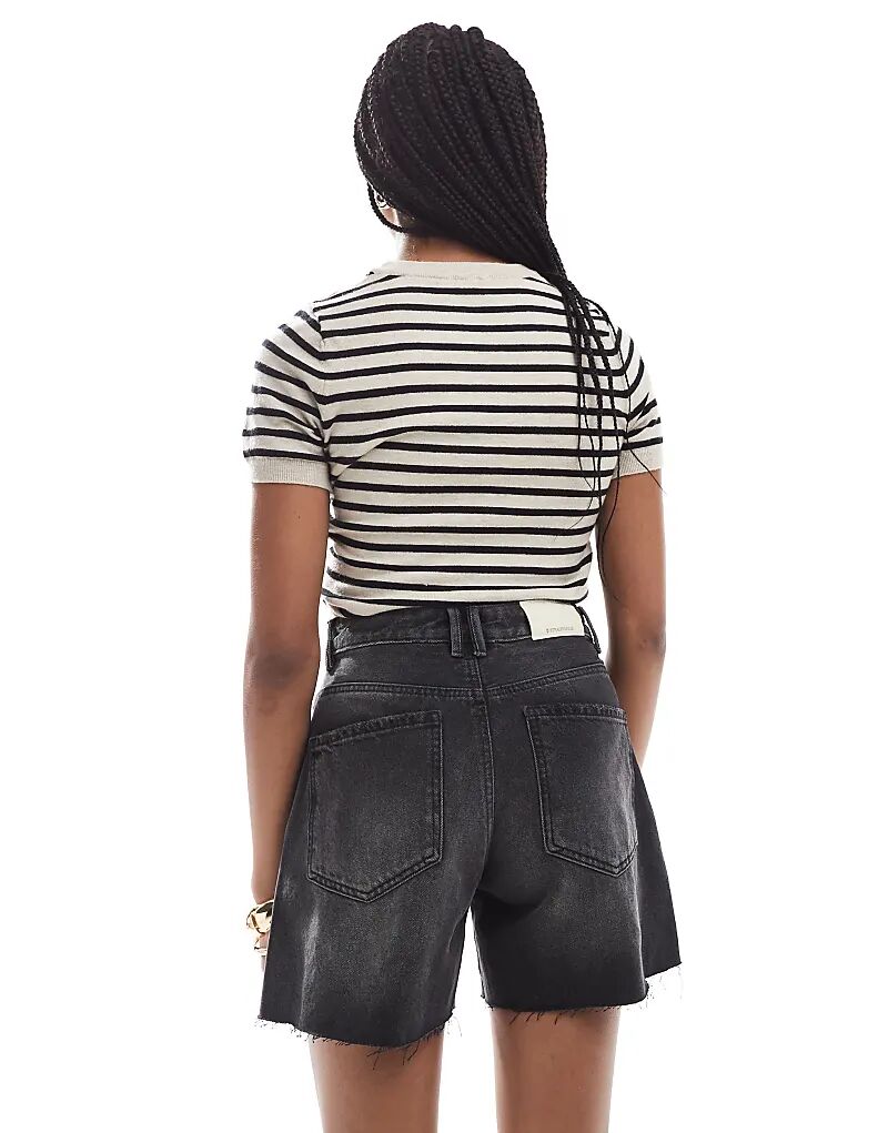 Длинные джинсовые шорты Stradivarius D93 темно-серого цвета