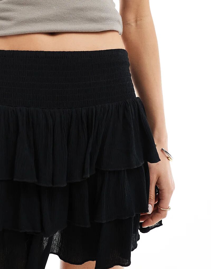 Мини-юбка Stradivarius с оборками черного цвета
