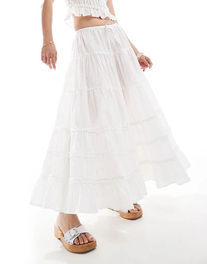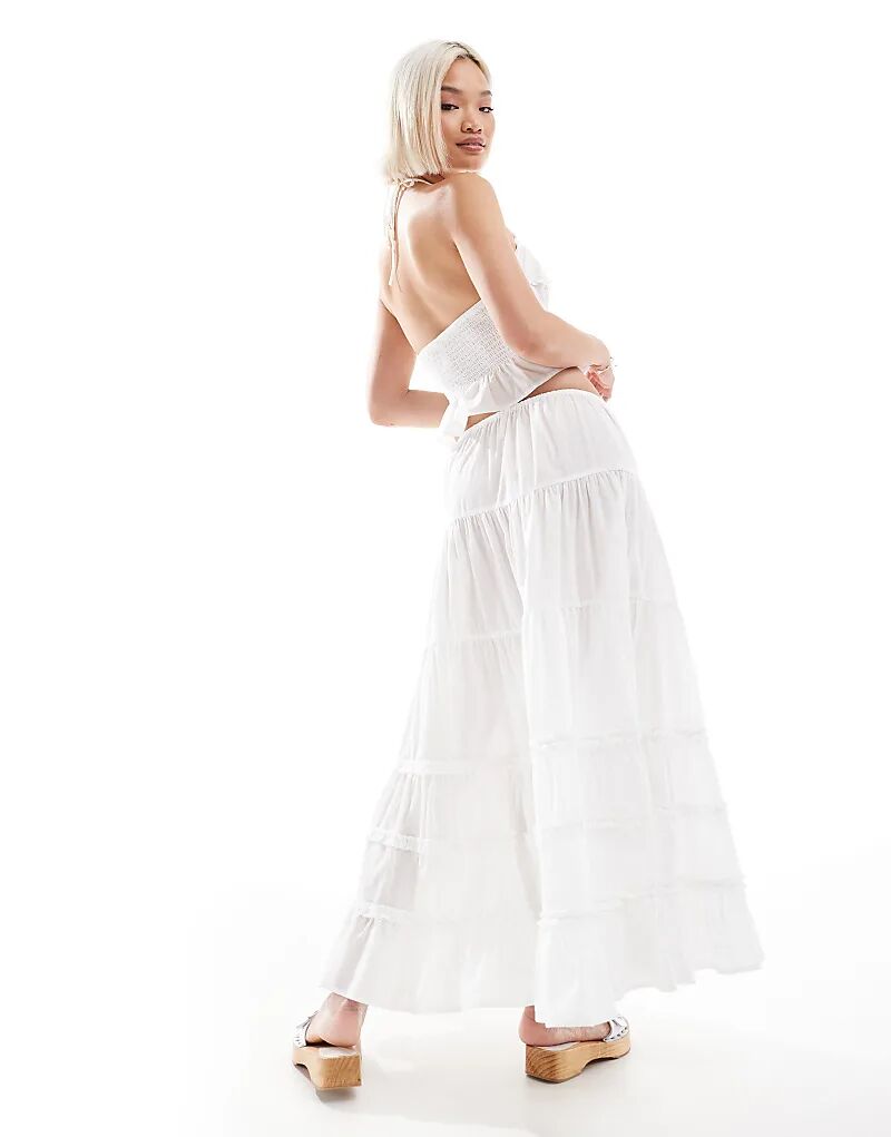 Длинная юбка Stradivarius с оборками цвета экрю