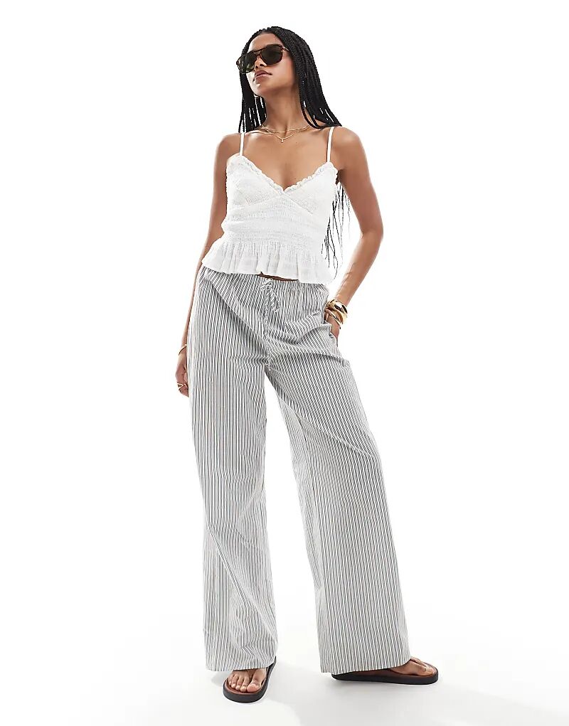 Приталенный топ Stradivarius с оборками цвета экрю