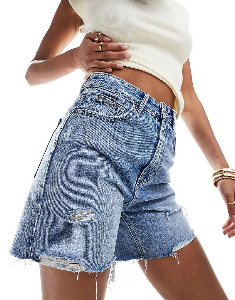 Длинные джинсовые шорты Stradivarius D93 синего цвета