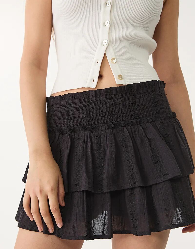 Юбка-шорты Stradivarius с оборками черного цвета 4 886₽