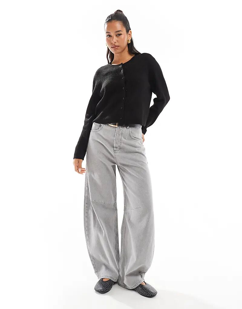 Кардиган Stradivarius в рубчик с пуговицами черного цвета 4 720₽