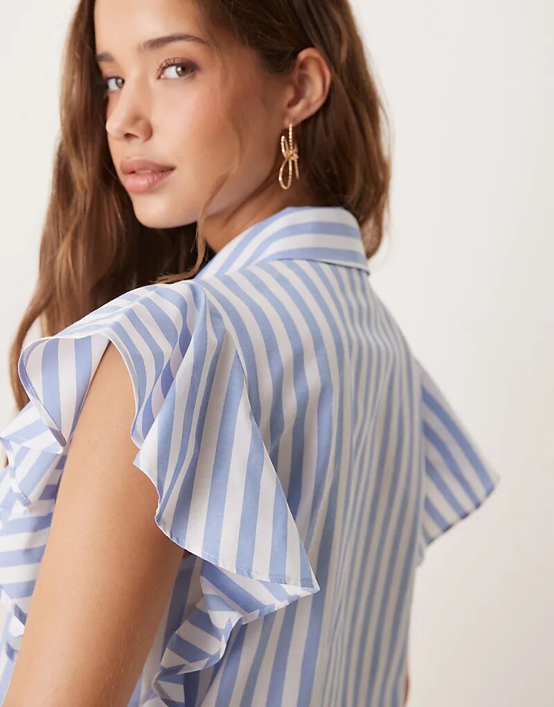 Мини-платье без рукавов с оборками ASOS DESIGN в синюю полоску