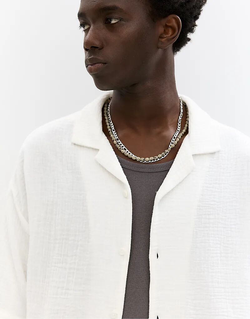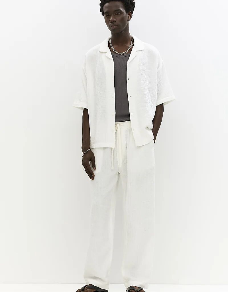 Рубашка Pull&Bear в деревенском стиле с короткими рукавами, бежевого цвета