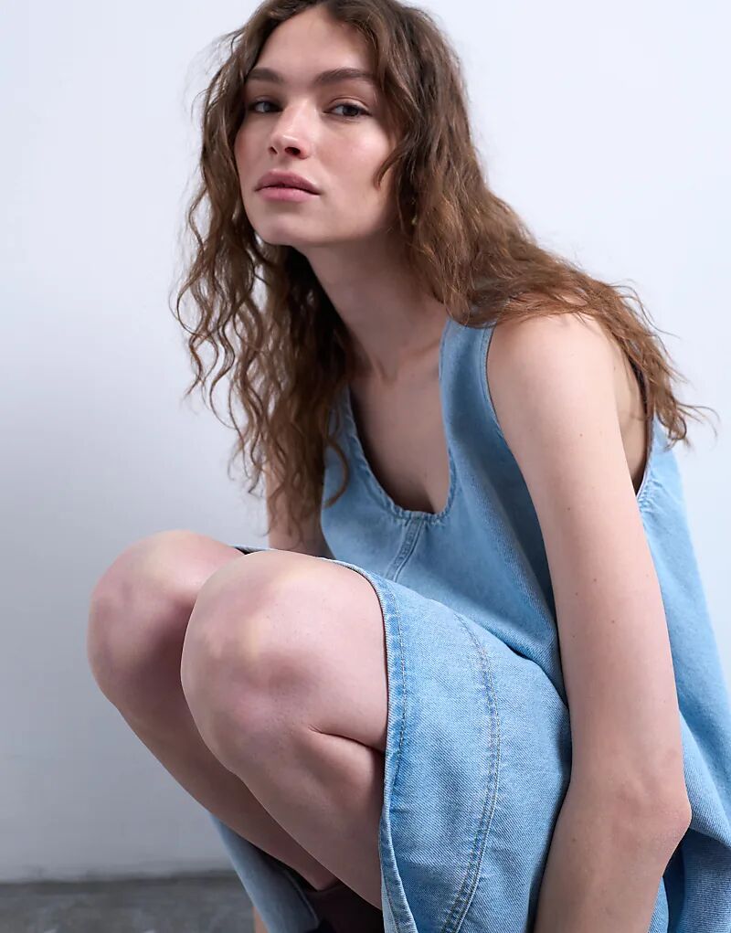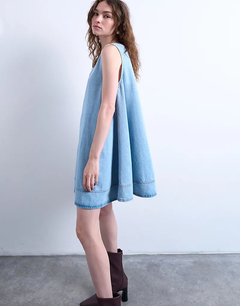 Платье-трапеция Topshop из денима цвета отбеливателя
