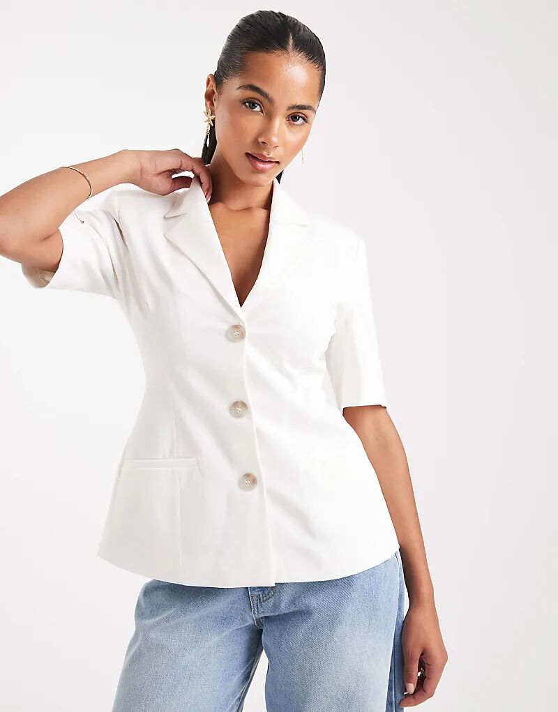 Белый блейзер с короткими рукавами ASOS DESIGN