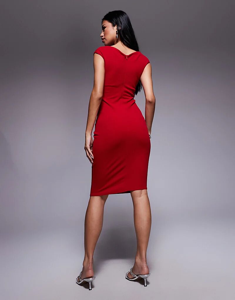 Платье миди Goddiva Bardot с плиссировкой красного цвета