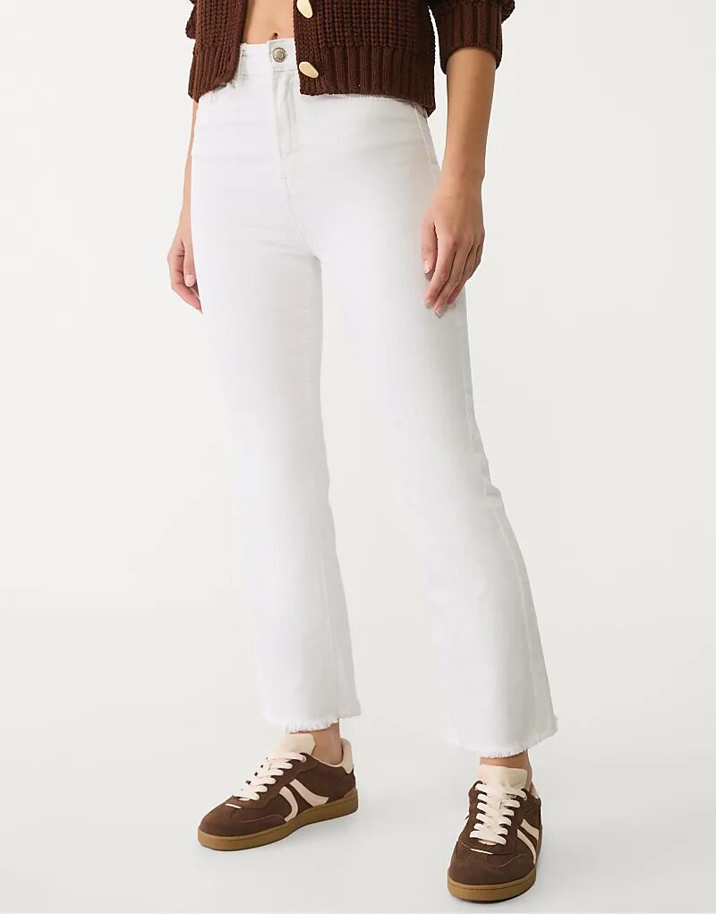 Укороченные расклешенные джинсы Stradivarius D78 белого цвета