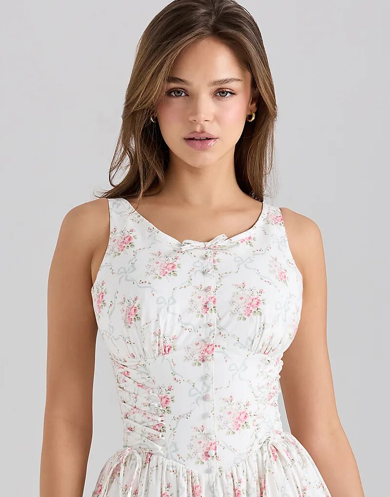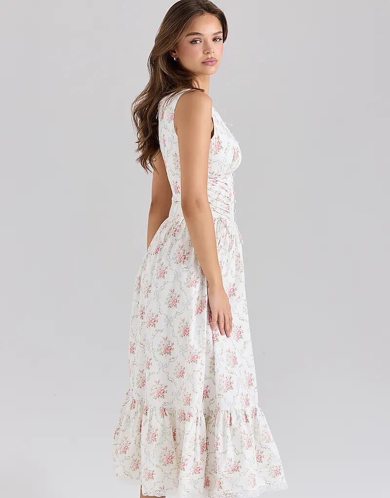 Платье миди Sienna из эластичного хлопка со шнуровкой и принтом роз