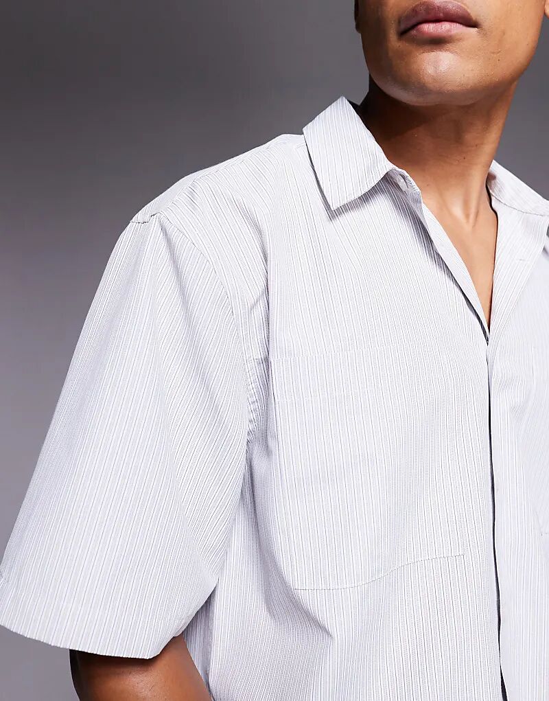 Рубашка ASOS DESIGN со стандартным воротником в светло-голубую полоску 2 437₽