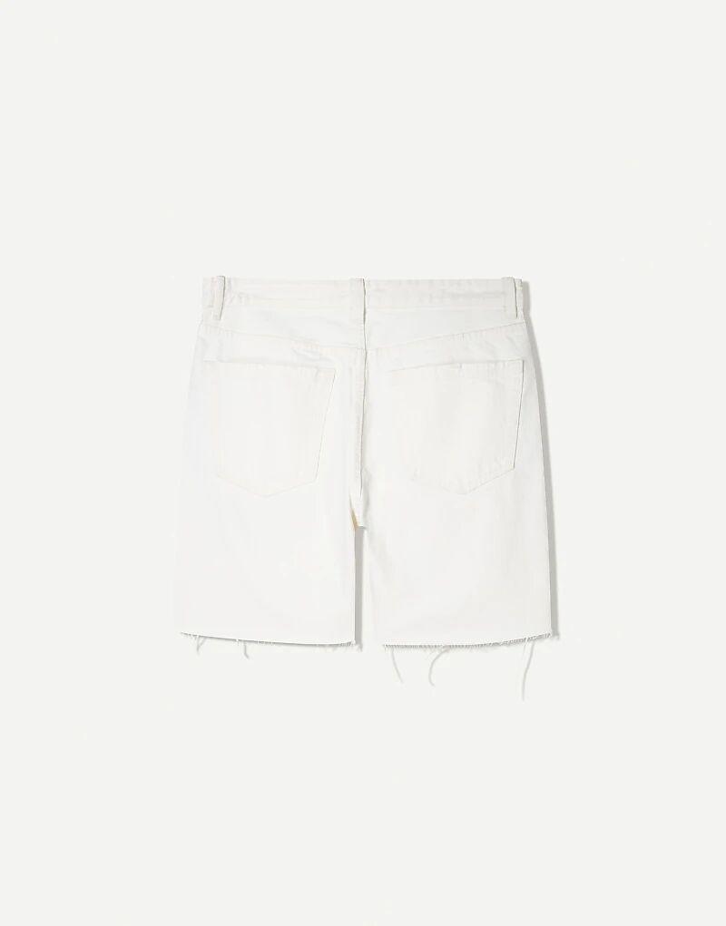 Белые рваные джинсовые шорты-бермуды Bershka