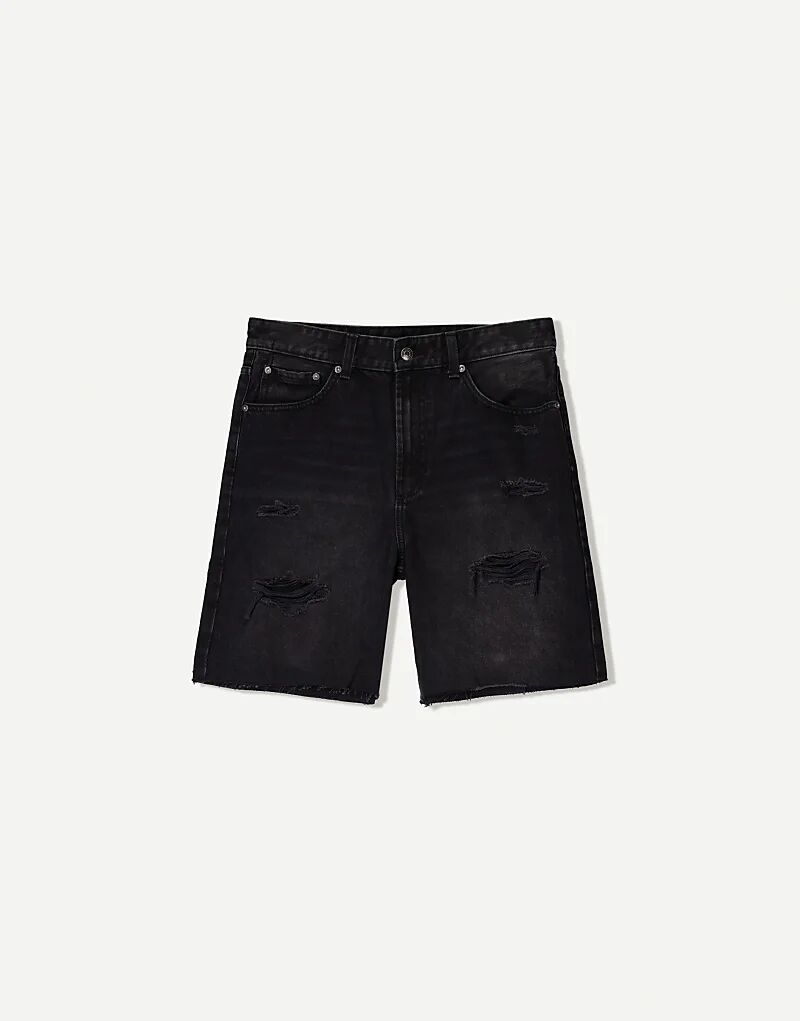 Шорты-бермуды Bershka с рваным денимом черного цвета
