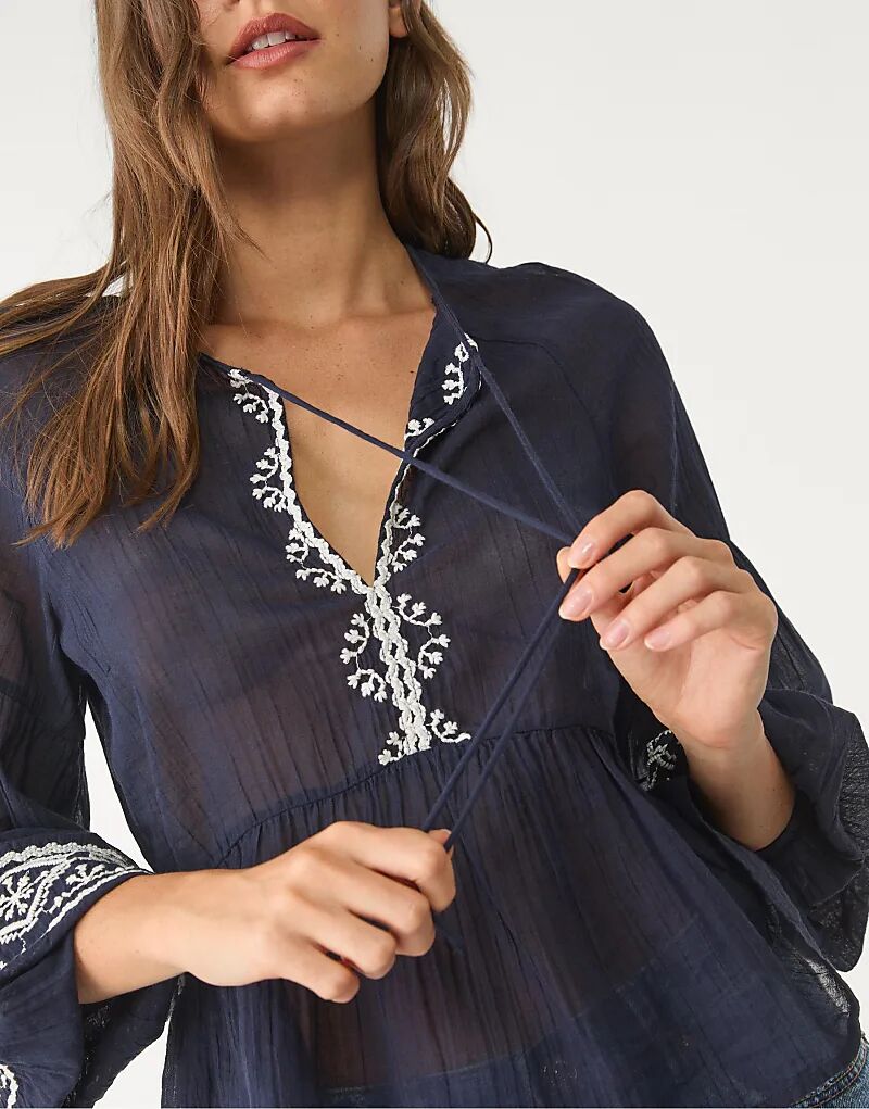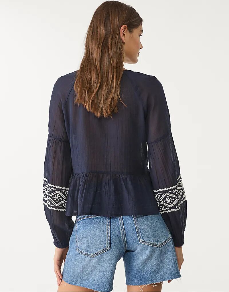 Вышитая блузка Stradivarius темно-синего цвета