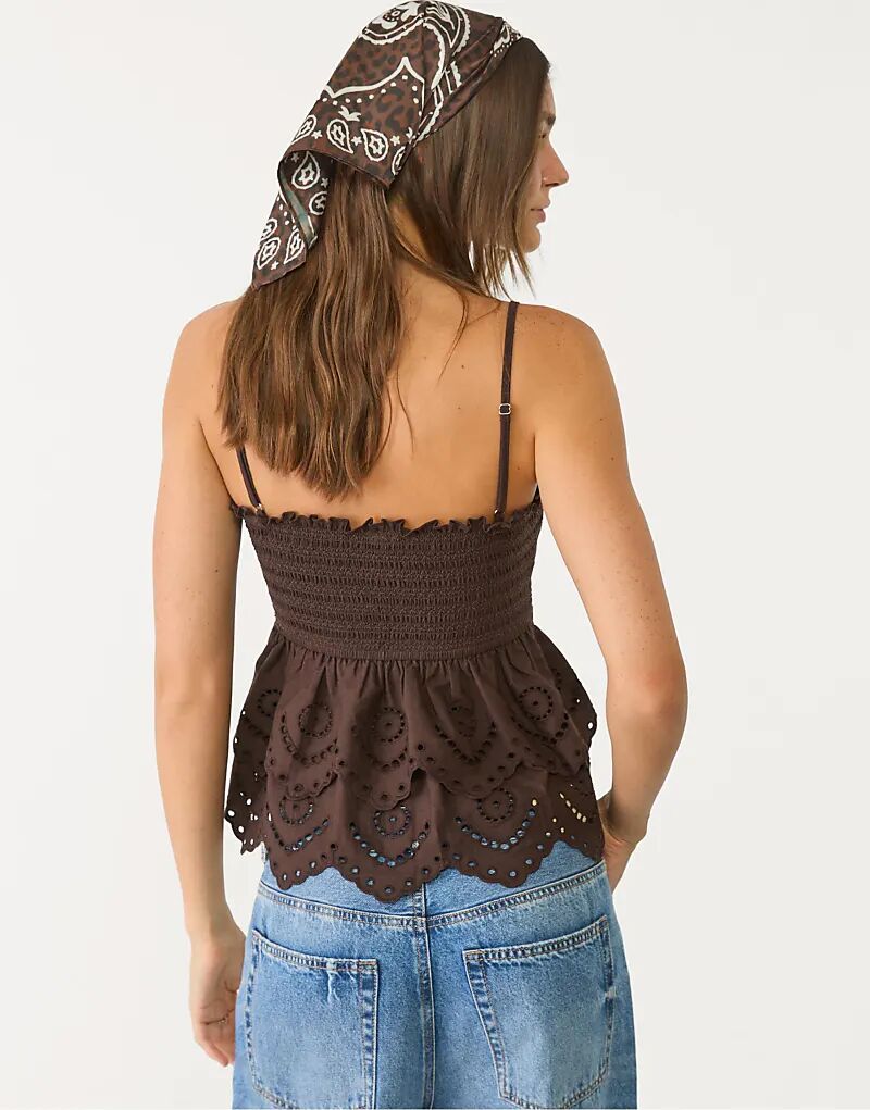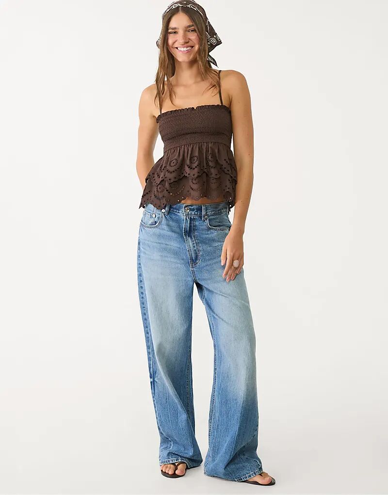 Вышитый топ Stradivarius с оборками коричневого цвета