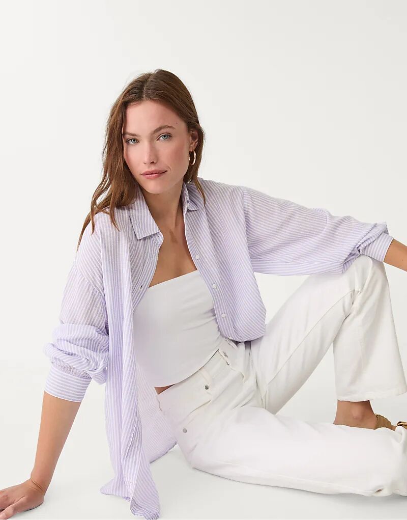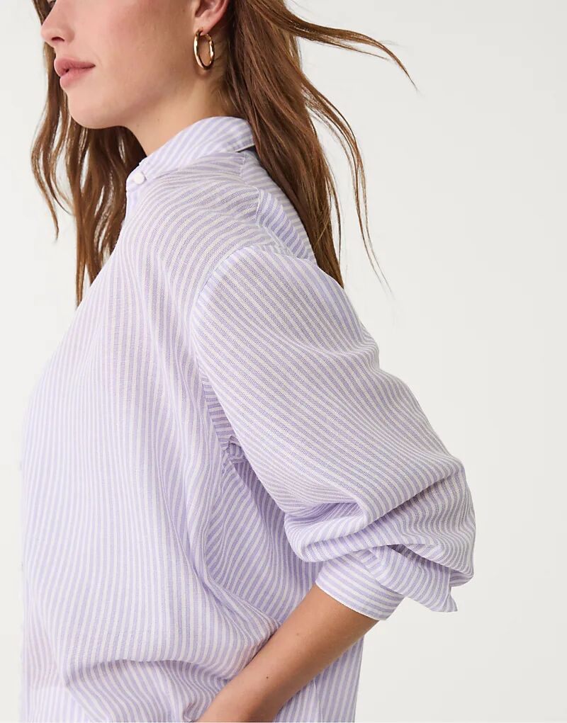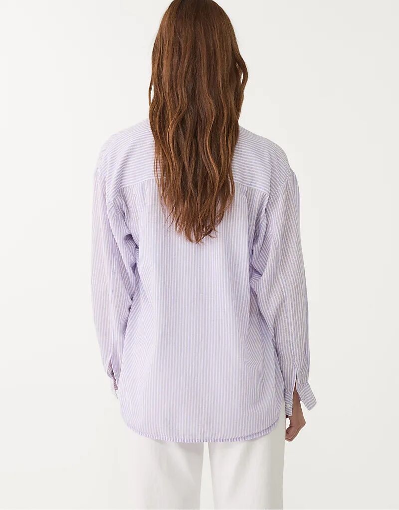 Рубашка Stradivarius из льняной смеси лилового цвета