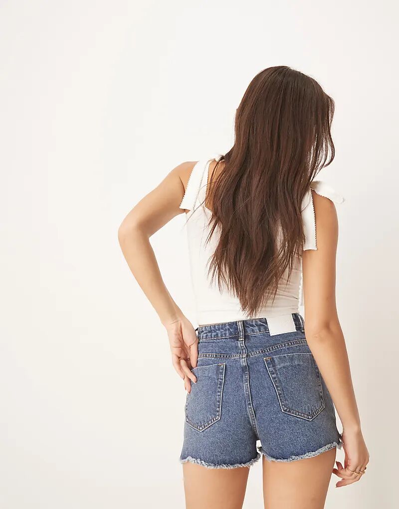 Гламурные джинсовые шорты с низкой посадкой, средней степени варки