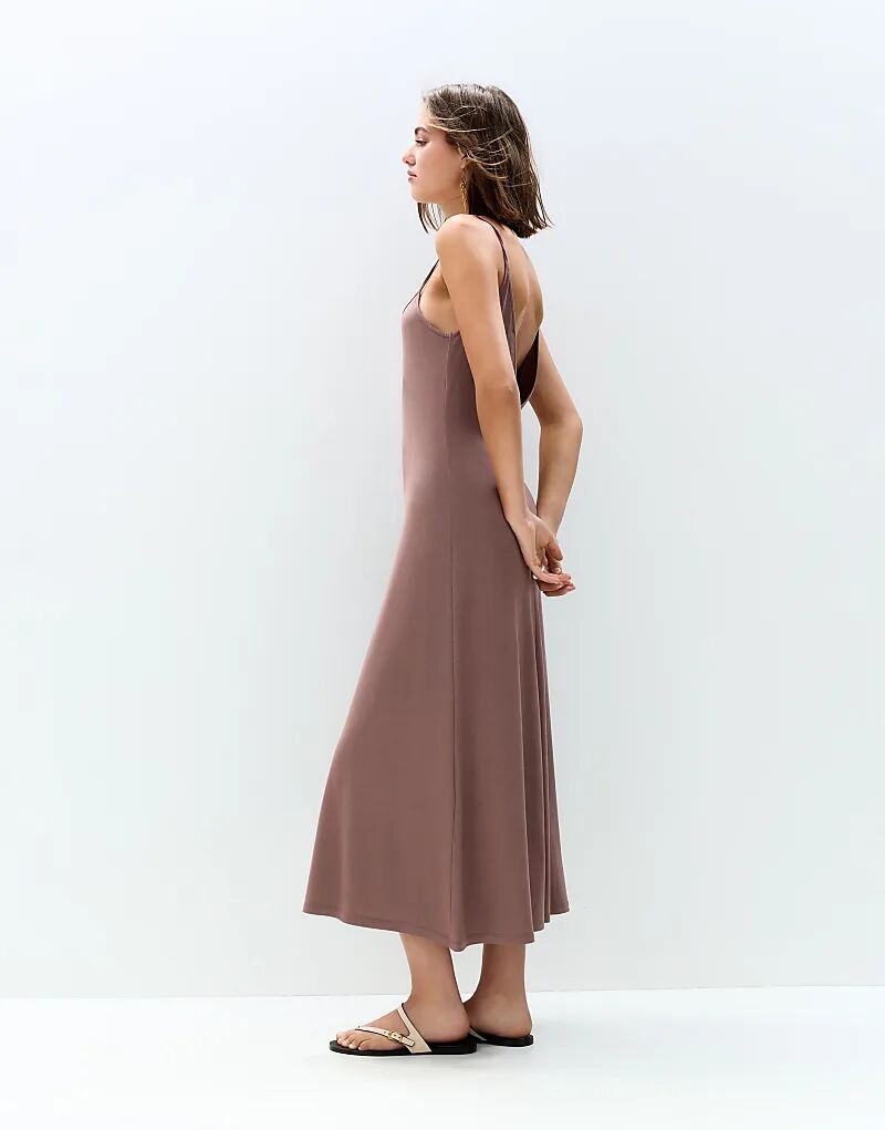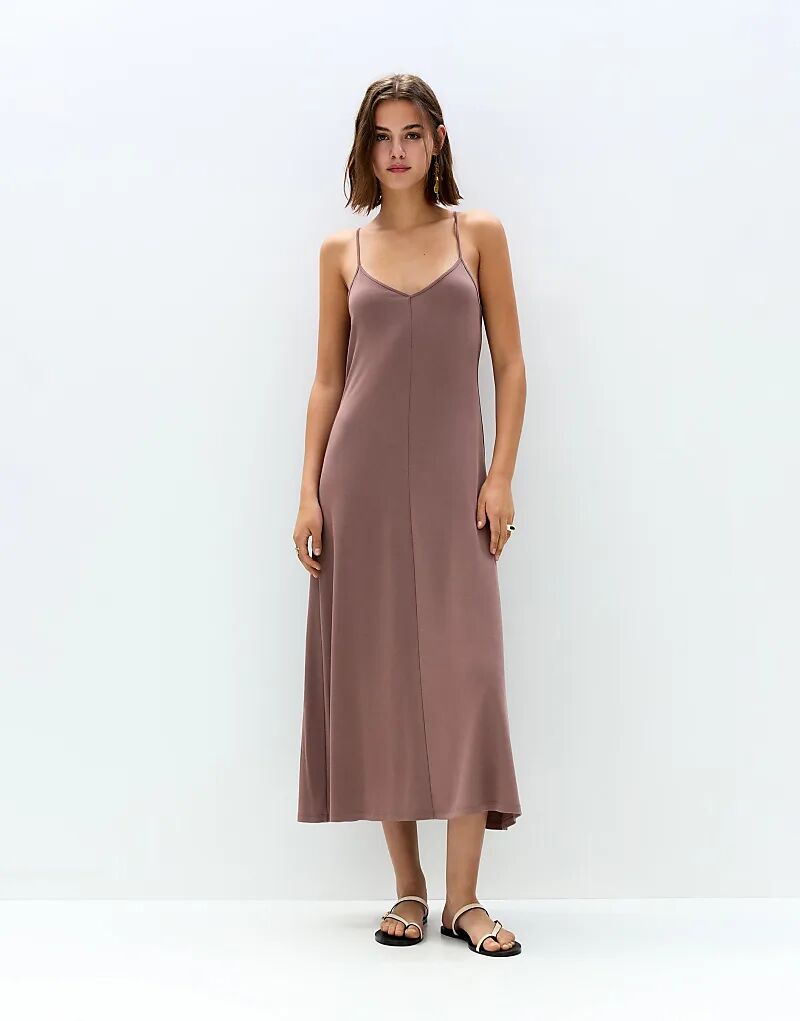 Платье миди Pull&Bear с струящимися бретелями темно-розового цвета