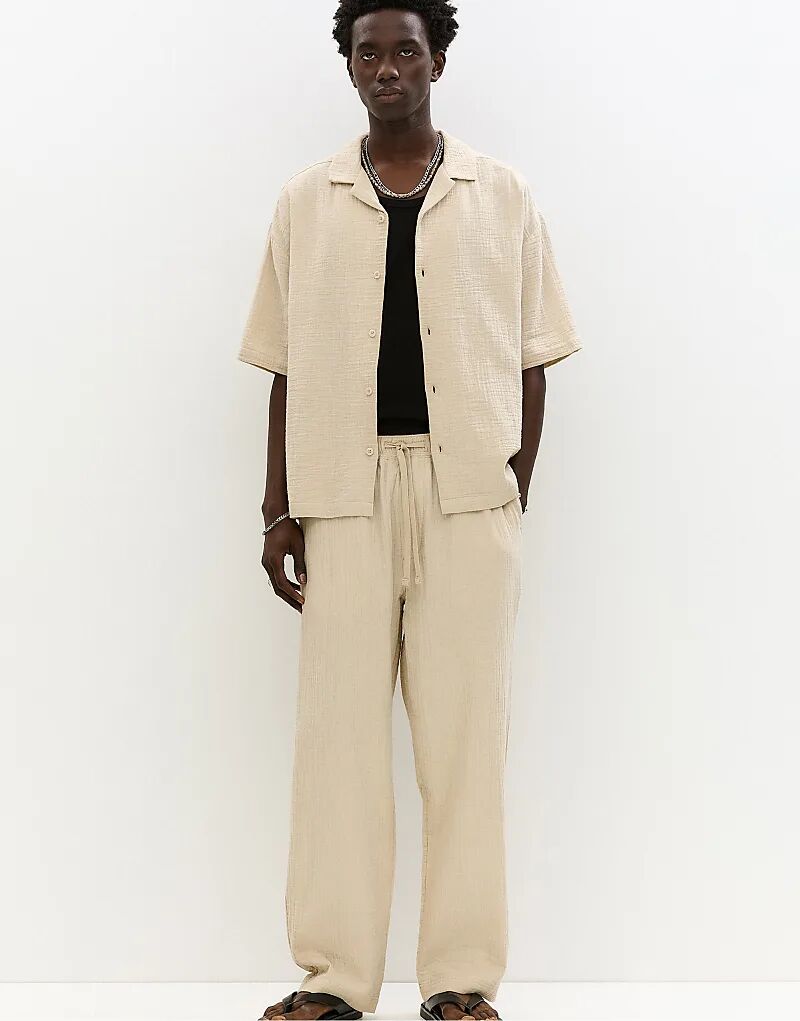 Рубашка Pull&Bear в деревенском стиле с короткими рукавами цвета охры