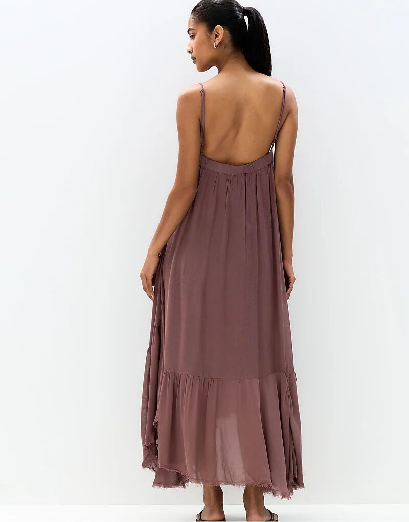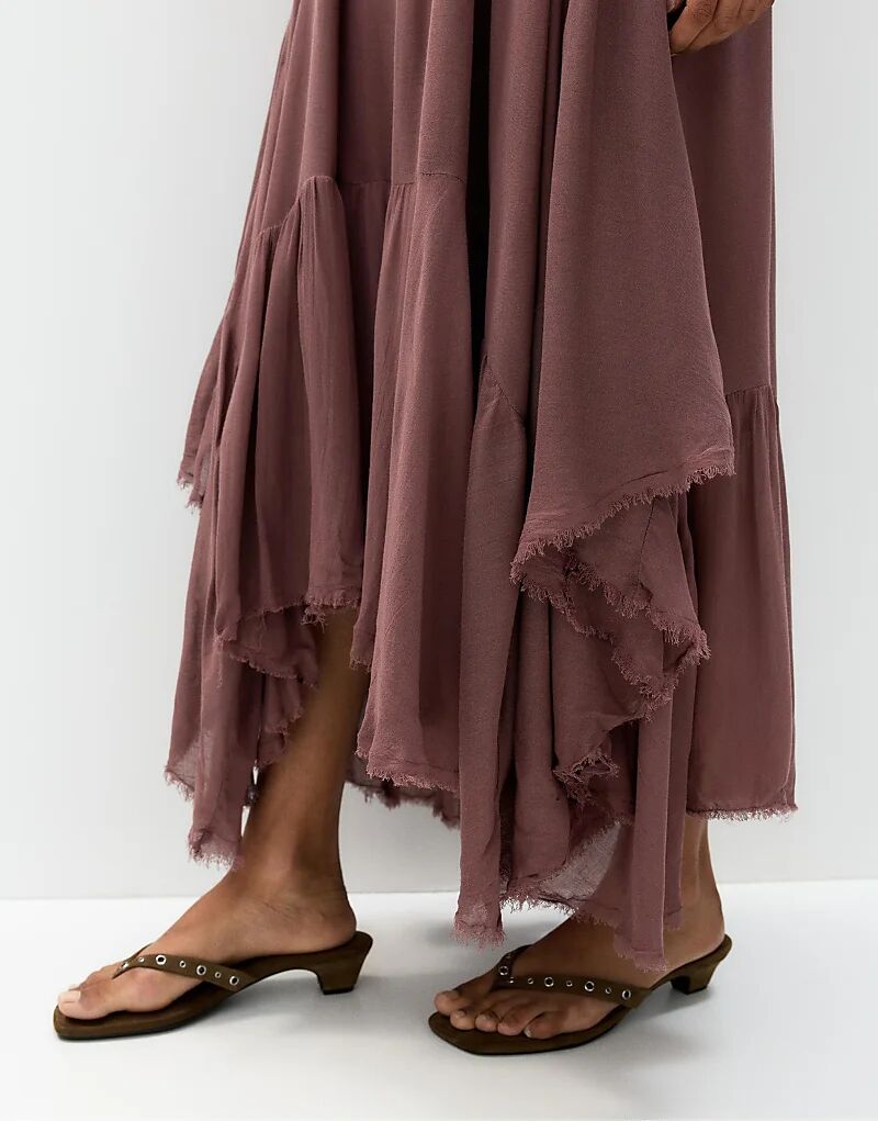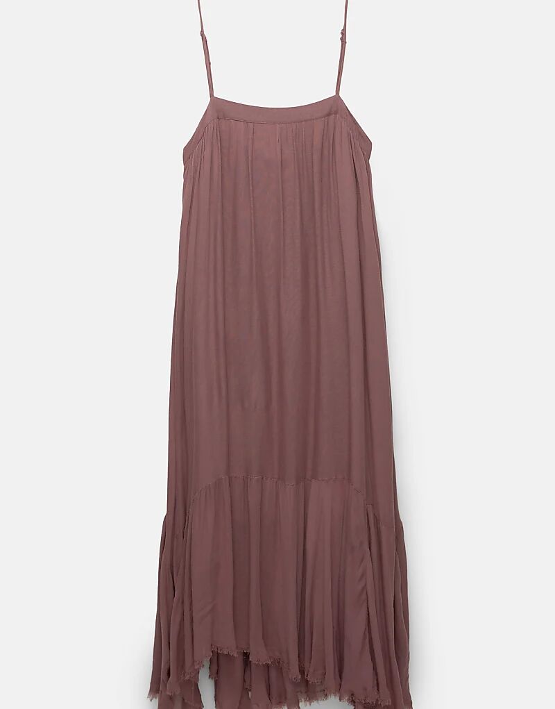 Платье миди Pull&Bear с асимметричным подолом коричневого цвета