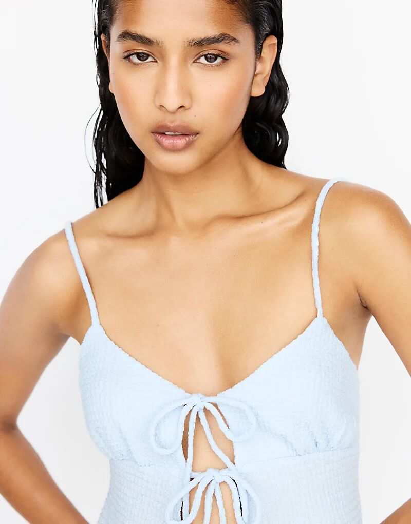 Топ Pull&Bear на бретельках с завязками бледно-голубого цвета