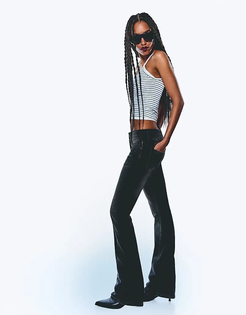 Джинсы Bershka Bootcut с низкой посадкой черного цвета