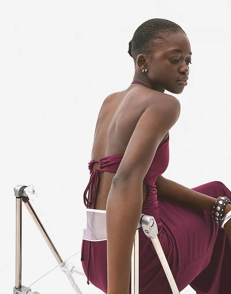 Платье миди Bershka струящегося цвета бордо 3 263₽