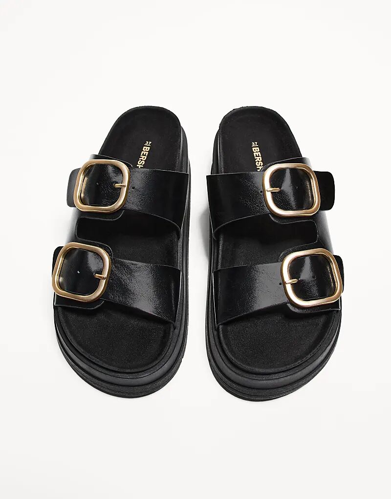 Сандалии Bershka на платформе с пряжкой черного цвета