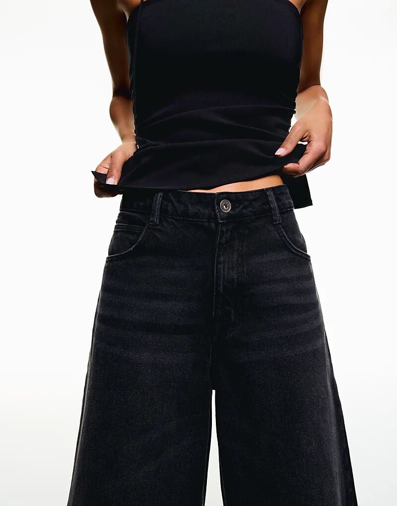 Джинсовые бермуды Bershka Baggy Denim черного цвета