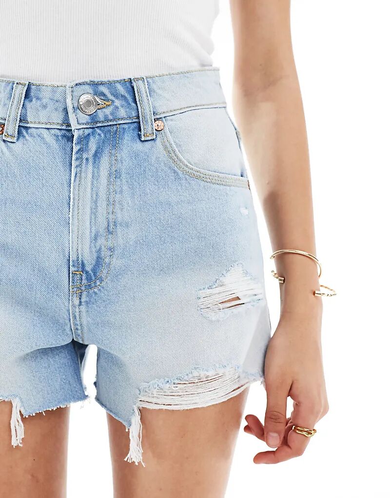 Рваные джинсовые шорты Bershka средне-синего цвета
