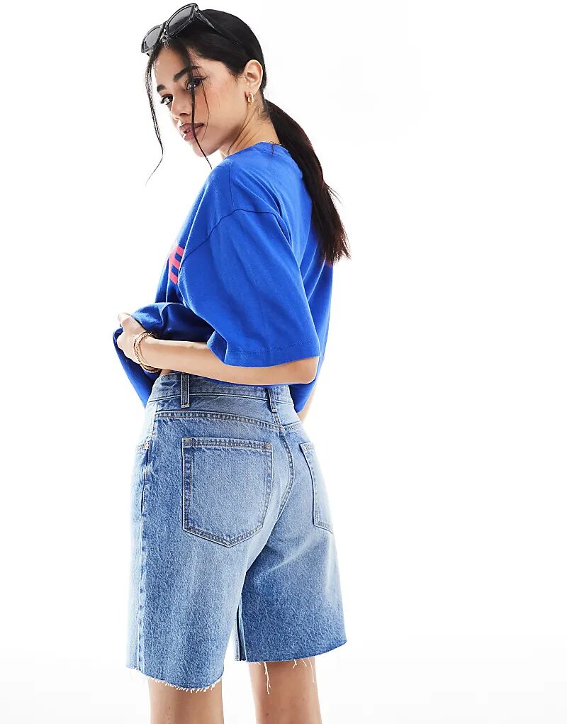Джинсовые шорты-бермуды Bershka средне-синего цвета