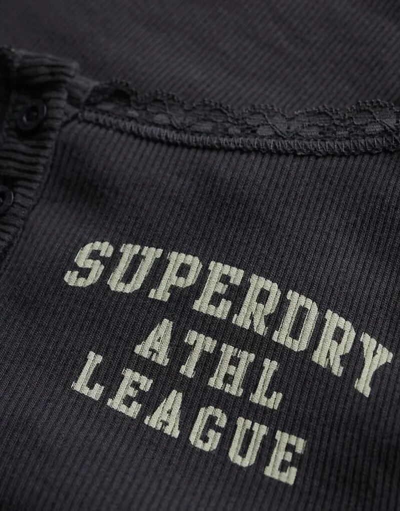 Топ Superdry Athletic essentials с графическими пуговицами в цвете «уголь»