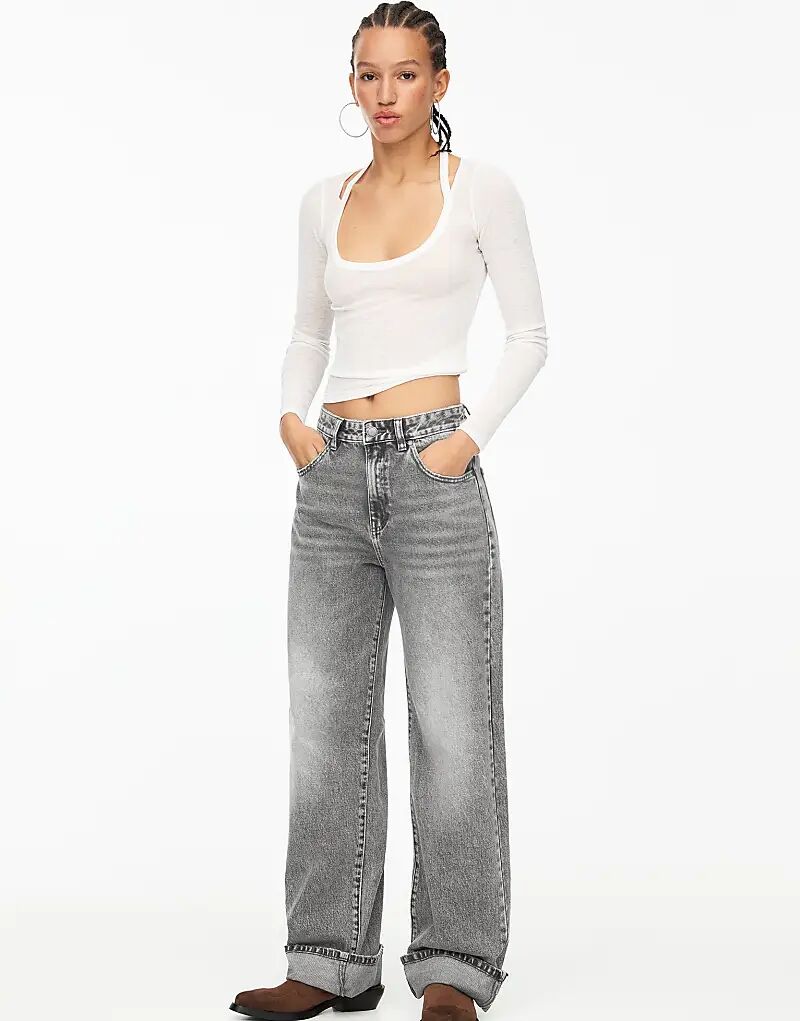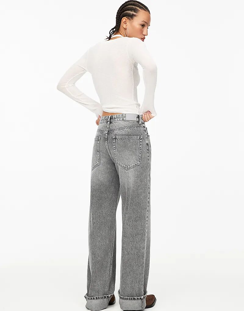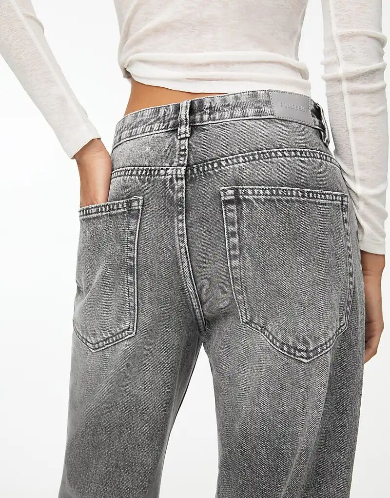 Джинсы Pull&Bear прямого кроя с отворотами серого цвета