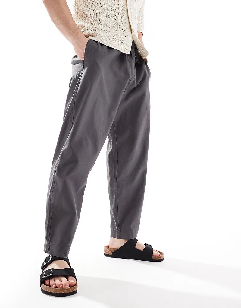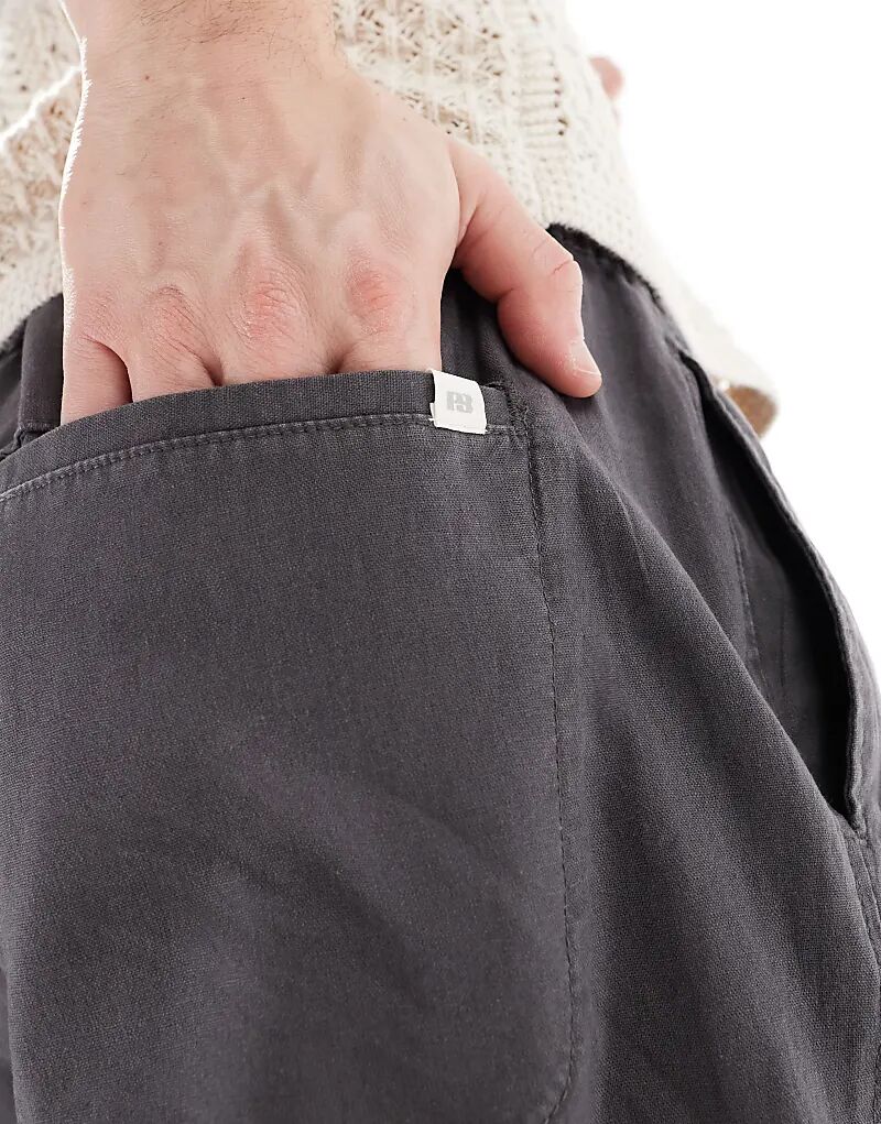 Брюки-джоггеры Pull&Bear из льняной смеси антрацитово-серого цвета