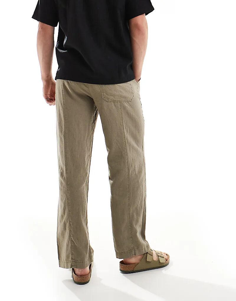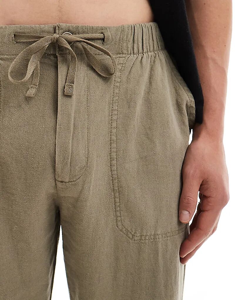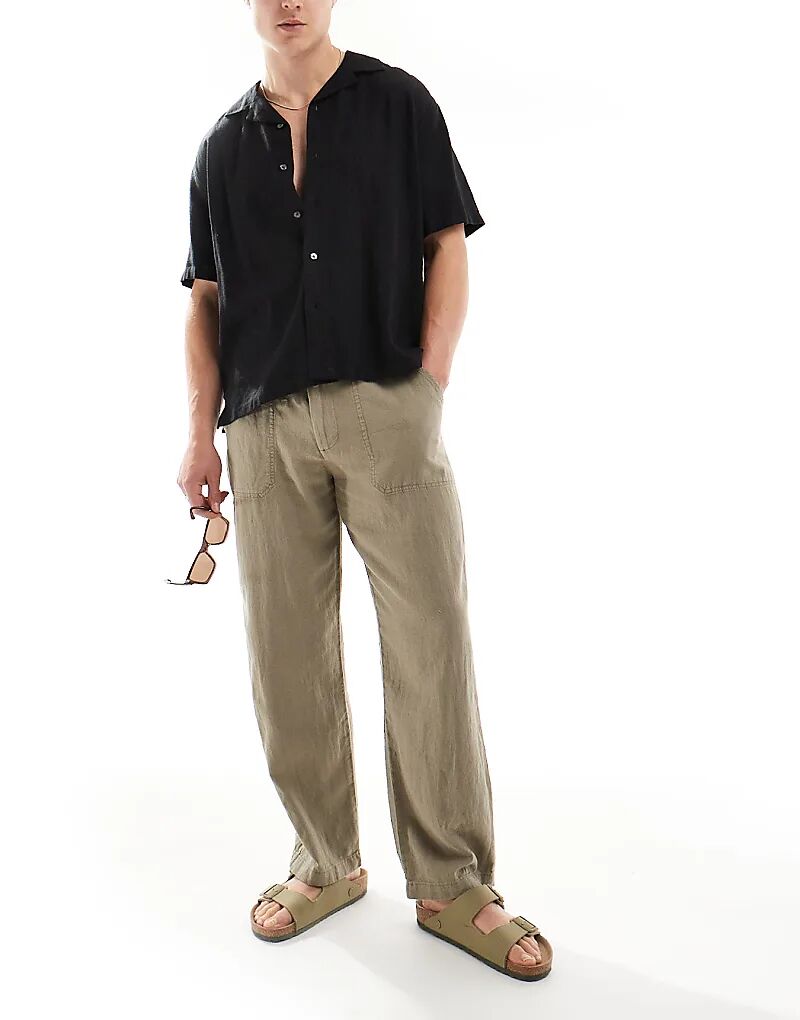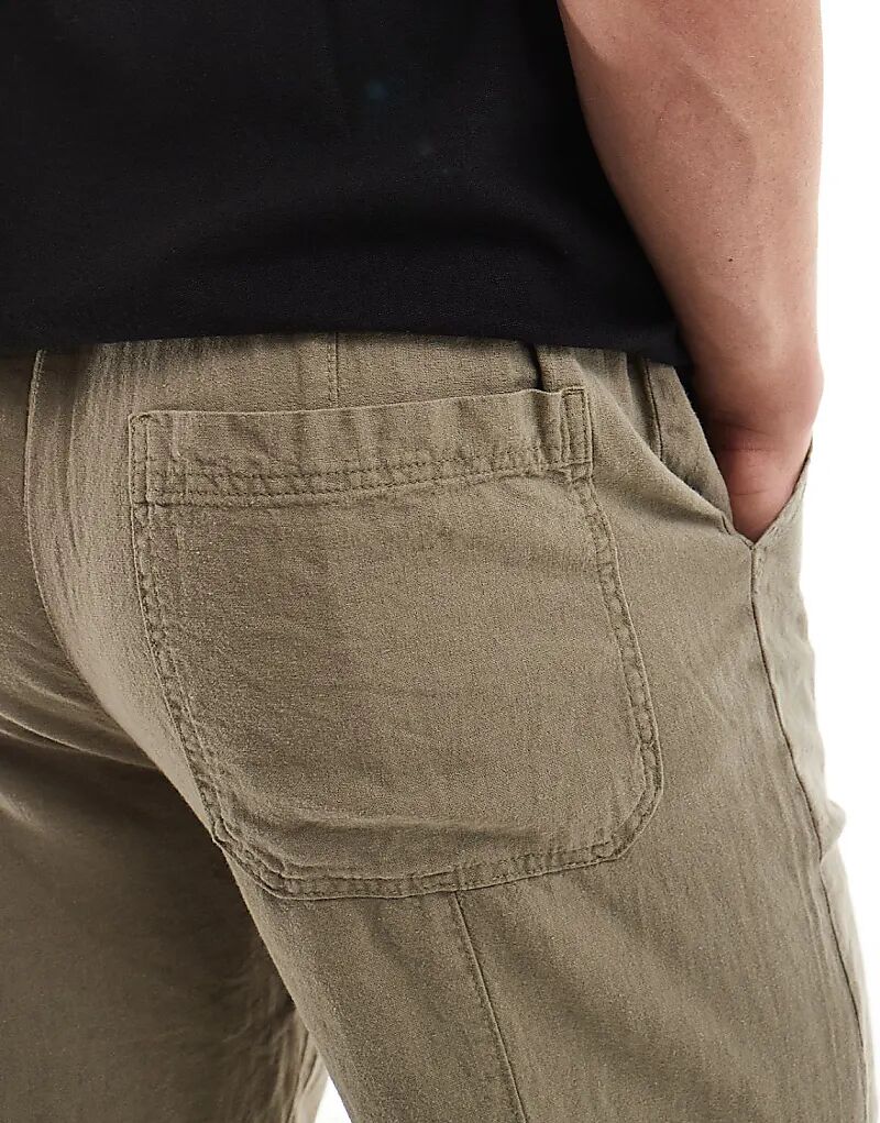 Спортивные брюки Pull&Bear из льняной смеси цвета хаки